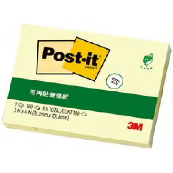 3M綠材質環保便條紙 76.2 X 101.6 mm黃色 100張/本 657RP-1
