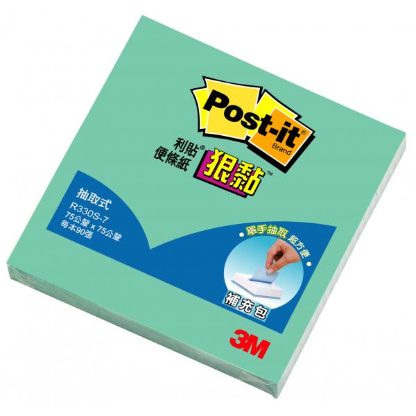 3M R330S-7狠黏抽取式便條紙補充包(湖水綠色)
