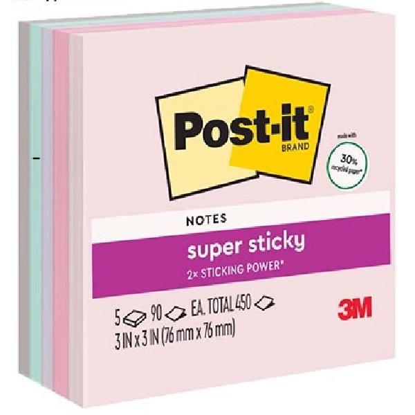 3M狠黏便條紙紙磚 76 x 76 mm混色 90張 /本;5本 /包 654-5SSWP