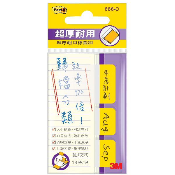 3M 686-DY可再貼抽取式超厚標籤黃色(2款)