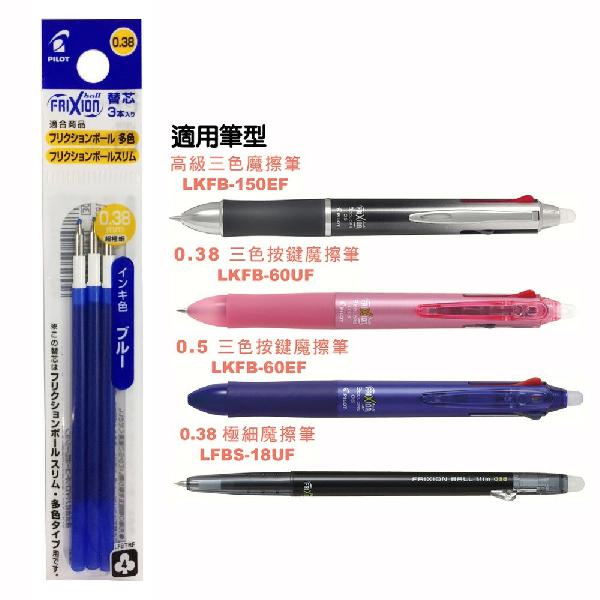 百樂0.38極細魔擦筆芯(3支入)-藍
