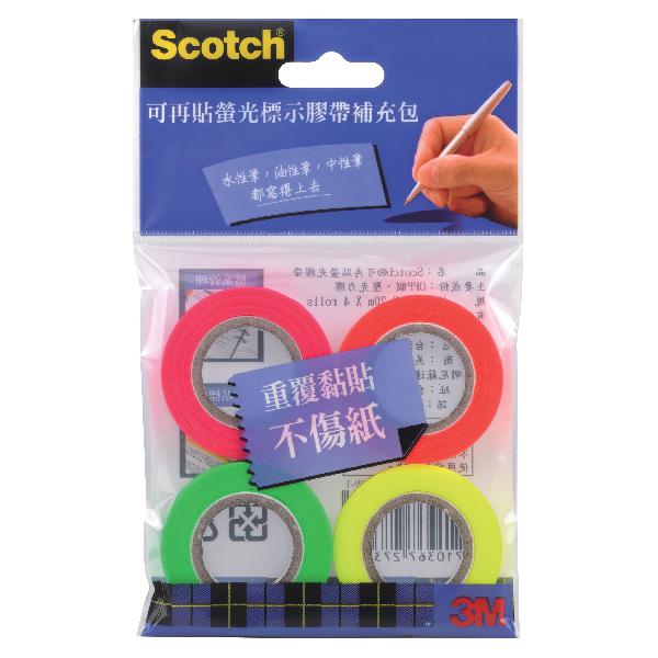 3M 812R4可再貼螢光標示膠帶補充包(4色入)