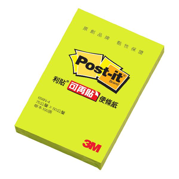 3M 656N-4利貼可再貼便條紙螢光綠色