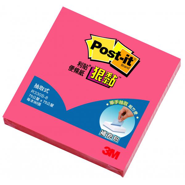 3M R330S-8狠黏抽取式便條紙補充包(螢光粉色)