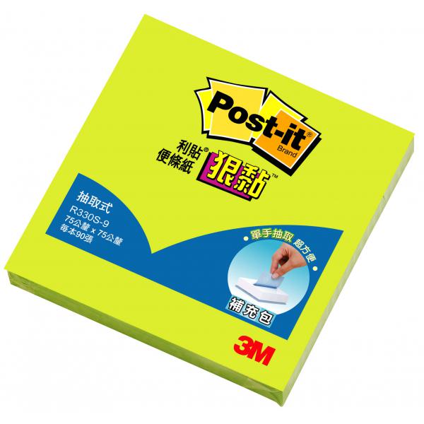3M R330S-9狠黏抽取式便條紙補充包(螢光綠色)