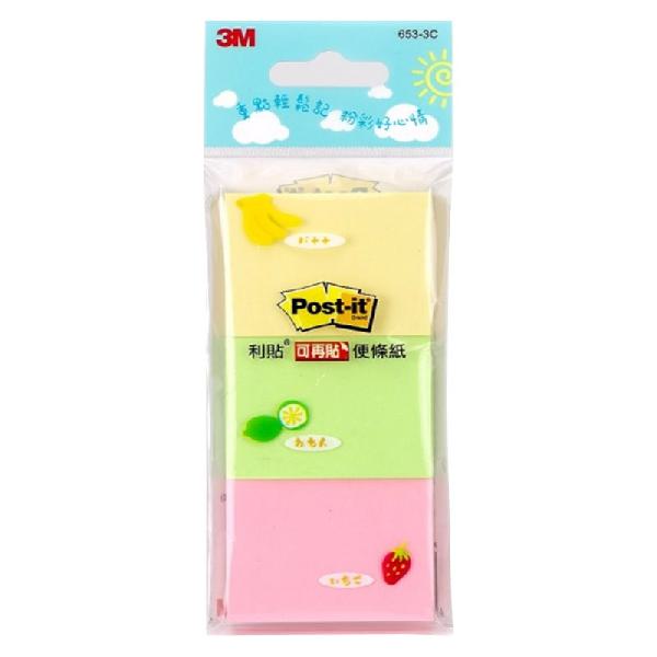 3M 653-3C利貼可再貼便條紙3色
