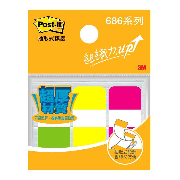 3M 686-Y可再貼抽取式超厚標籤(3色)