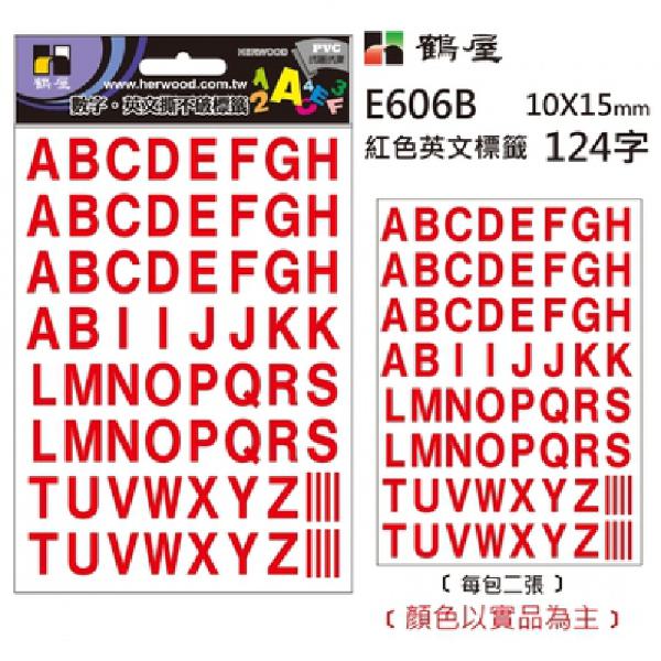 鶴屋 PVC英文標籤(紅)E606B