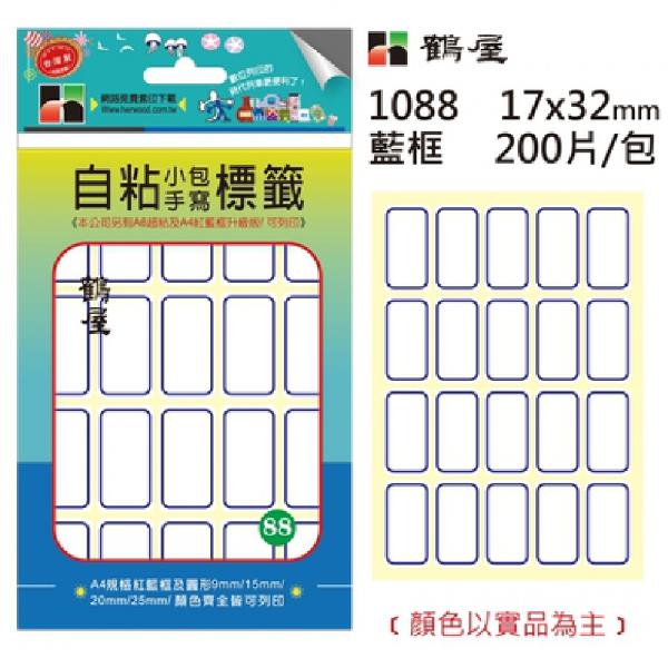 鶴屋方形紅藍框標籤1088