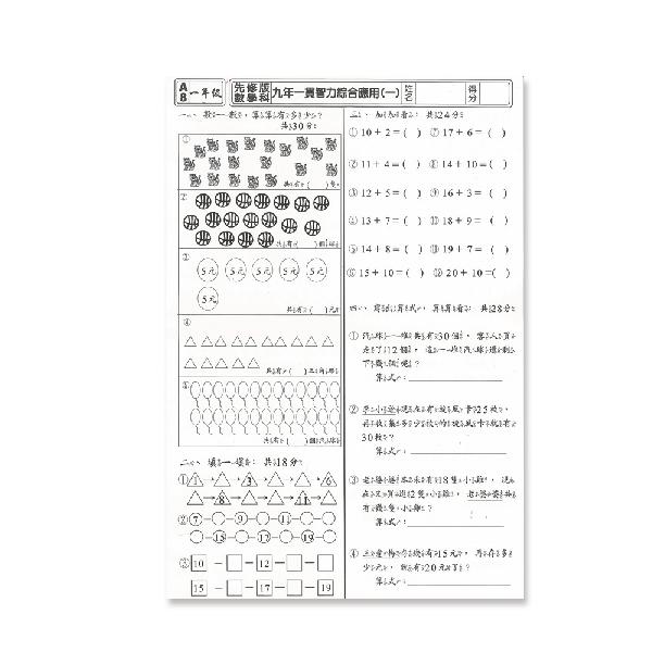 產品目錄>紙品區>幼教系列>世一 先修評量卷10 進階數學 B3722-3