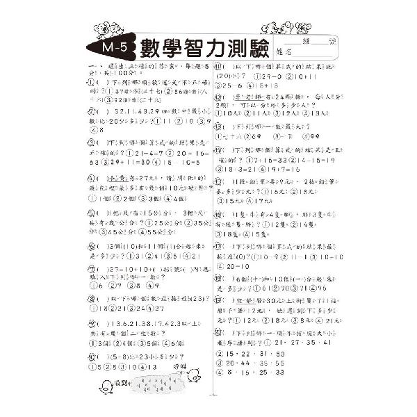 產品目錄>紙品區>幼教系列>世一 先修評量卷15 數學智力測驗 B3727-1