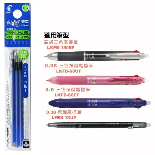 百樂 0.5三色按鍵魔擦筆筆芯(3支入)-藍