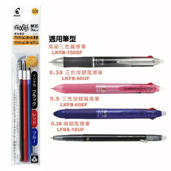 百樂0.38極細魔擦筆芯(3支入)-混色(藍/紅/黑)